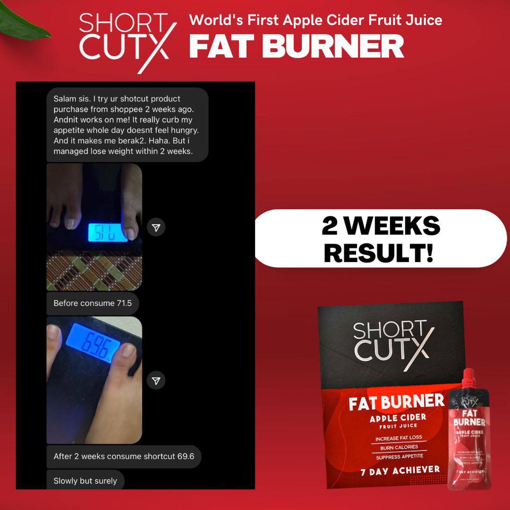 [CHEAPEST!] Shortcutx Apple Cider Vinegar Weight Loss Fat Burner Fruit Juice Slimming Tea Teh Tarik (Ready To Drink)