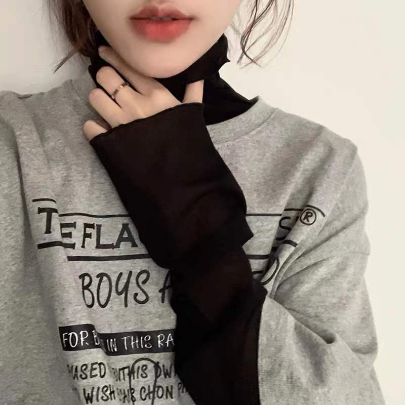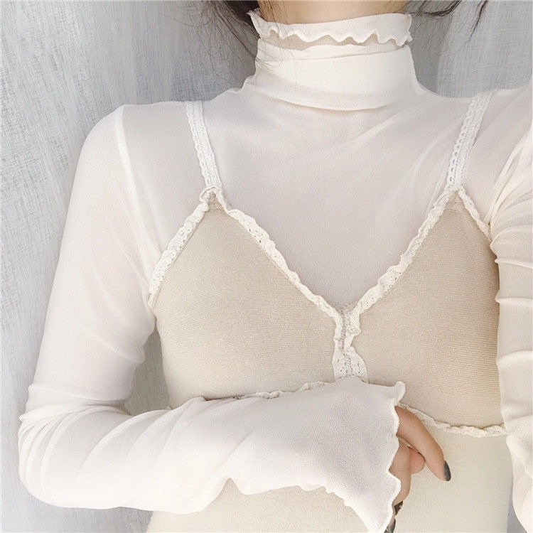 ☁️Inner wear king skin-transparent base top new ins retro high collar skin-friendly inner wear mesh top fairy long sleeve lace base shirt female girls top Korean INS style