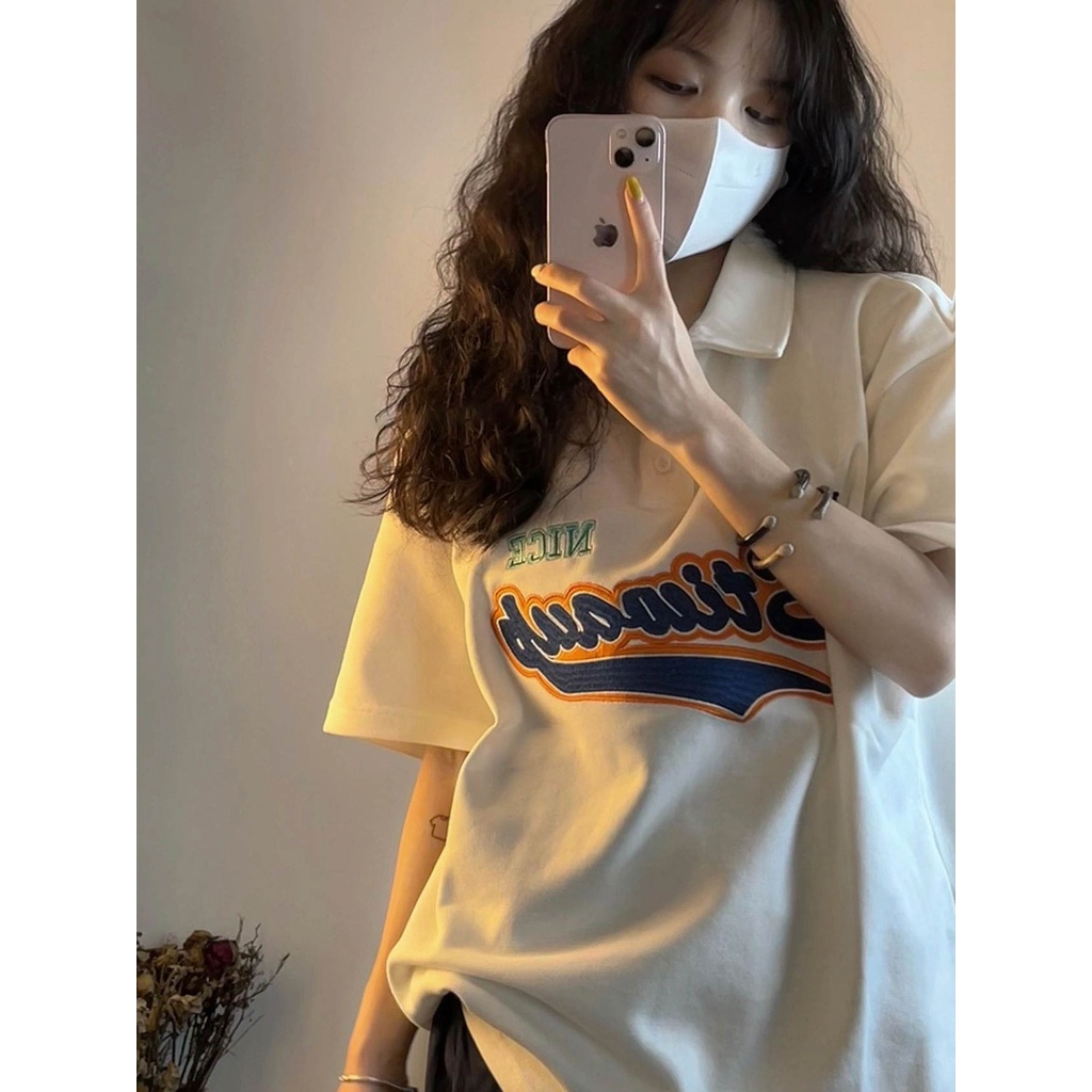 Pure cotton embroidered t-shirt short sleeve Harajuku style top short sleeve top letter oversize bottoming shirt ins style clothes girls clothes top