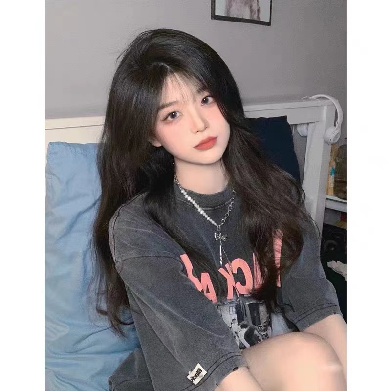 100% cotton t-shirt American retro top short sleeve short-sleeved top couple's outfit oversize Harajuku style top girls short-sleeved t-shirt clothes women