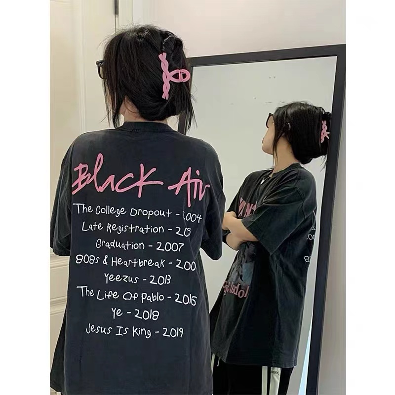 100% cotton t-shirt American retro top short sleeve short-sleeved top couple's outfit oversize Harajuku style top girls short-sleeved t-shirt clothes women