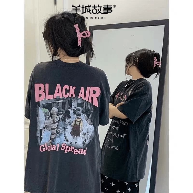 100% cotton t-shirt American retro top short sleeve short-sleeved top couple's outfit oversize Harajuku style top girls short-sleeved t-shirt clothes women