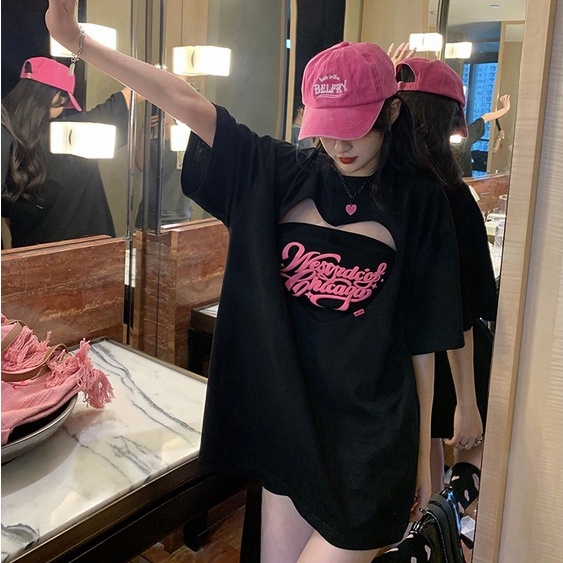 Love long tops, short-sleeved tops, oversize Korean tops, tube tops, hot girl tops, ins style, loose, slimming, girls' tops, pure cotton