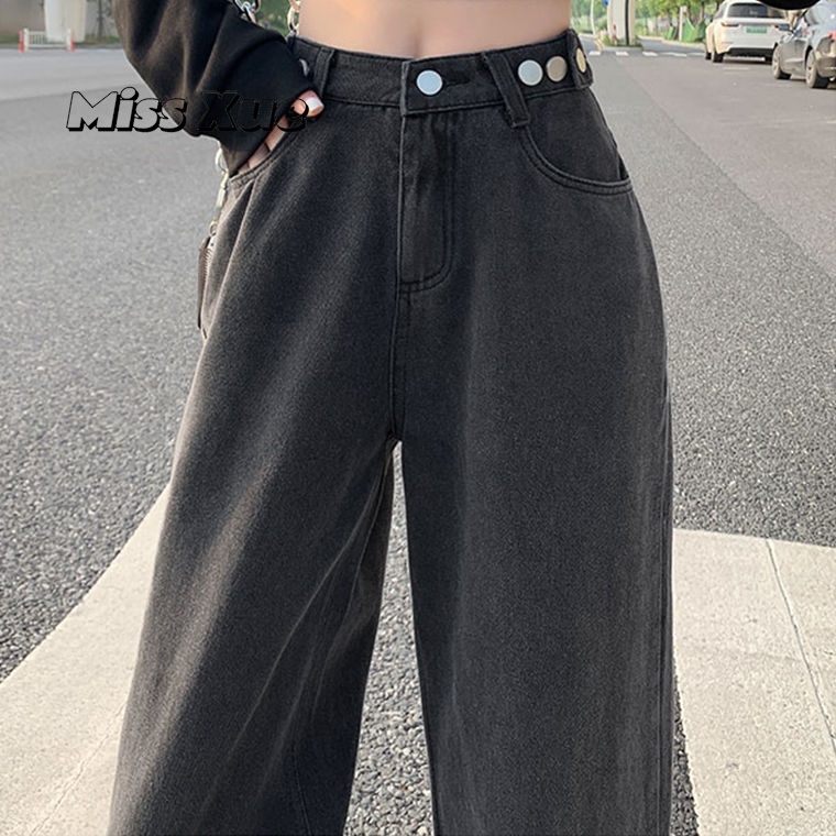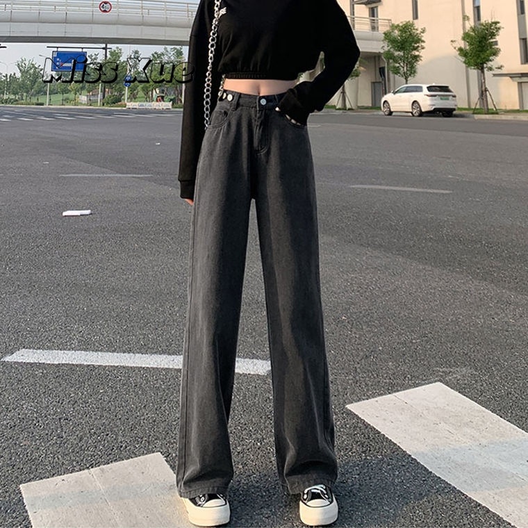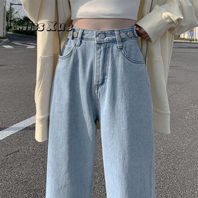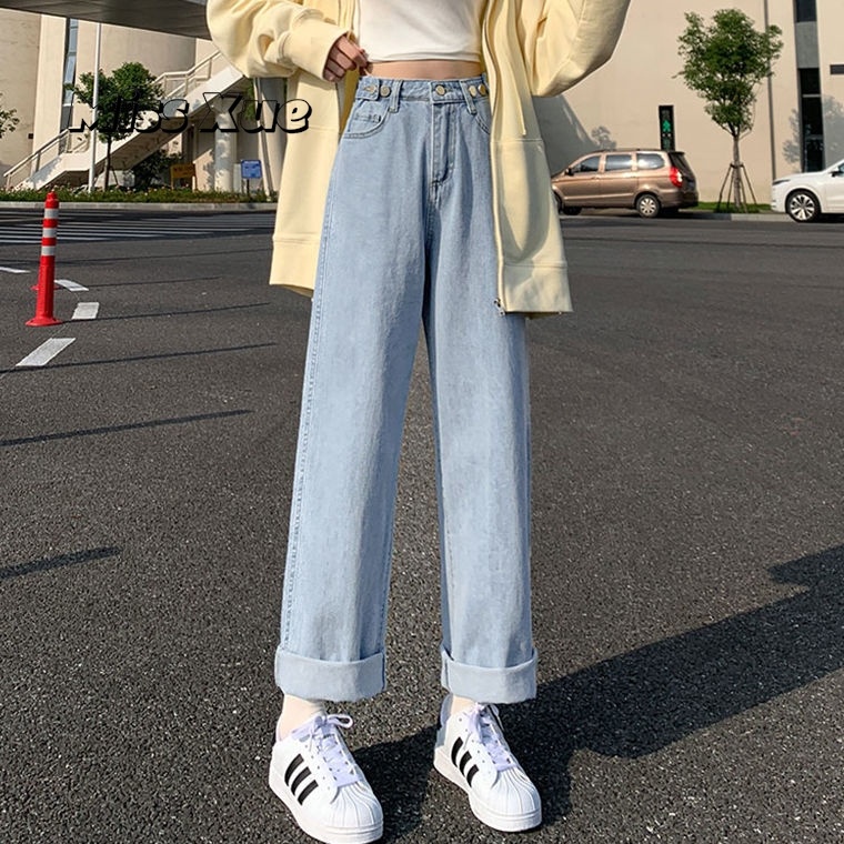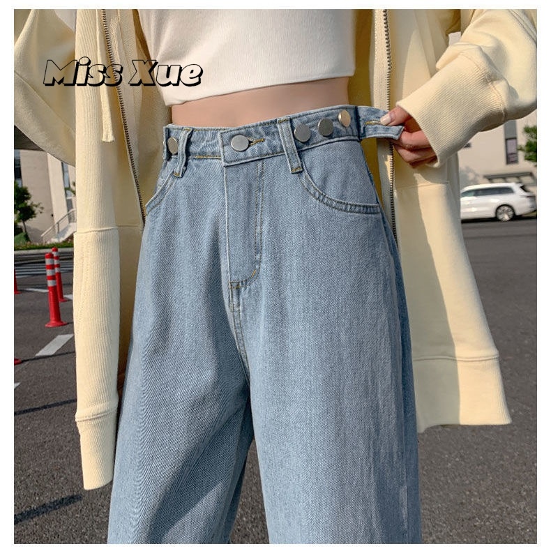 【Miss Xue】Straight-leg loose jeans for women, high-waisted, light-colored, high-waisted, slimming, petite, floor-length pants, wide-leg pants, women's pants, trousers for women
