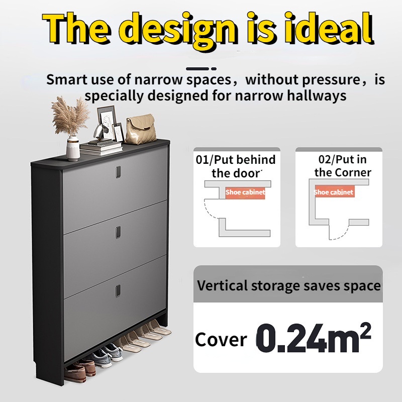 【SG Local Seller】Double Layer Shoe Cabinet 17/24cm Outdoor Shoe Rack 110cm Large Capacity Multifunctional Space Saving Ultra Thin Shoe Cabinet
