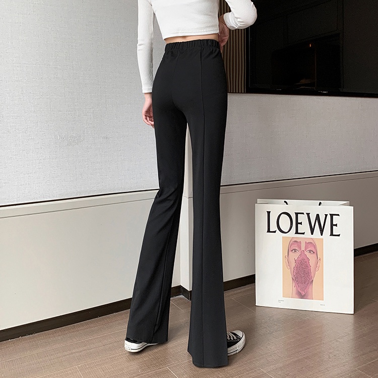 Elastic slit flared black pants [131] PAPI spring and summer new slim fit Korean INS home wide pants slit pants temperament flared pants