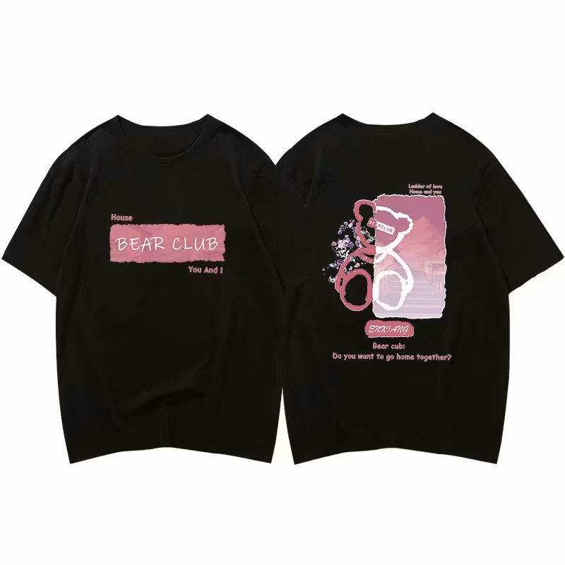 Couple Short T-Shirt Korean Style Bear Graffiti Print Loose Oversize Short Sleeve Top [NLSD-D167]