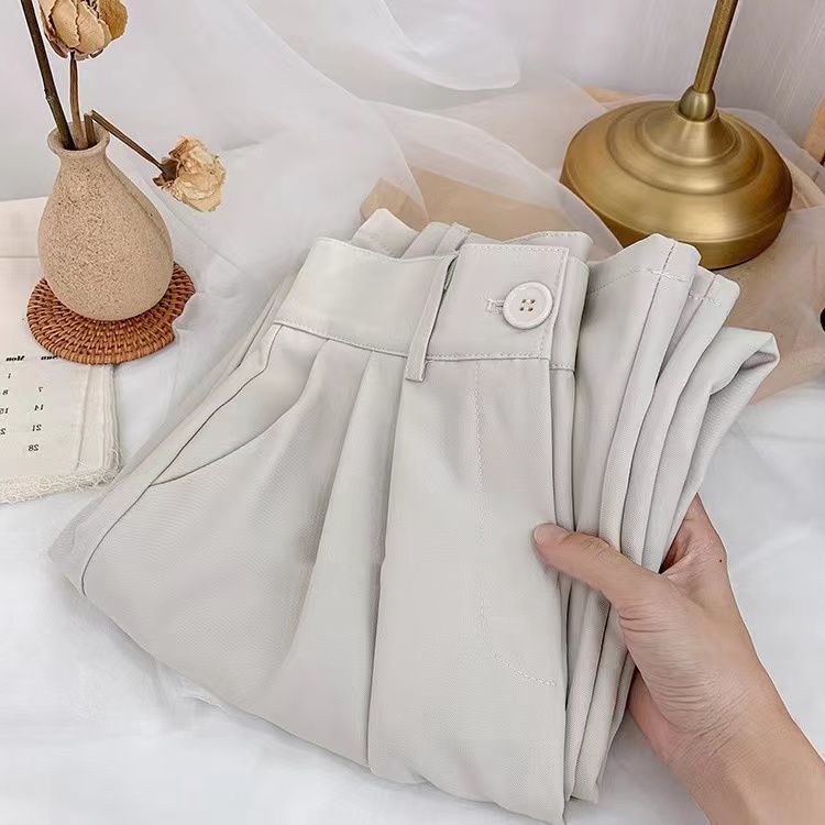 Spot Korean all-match solid color floor-length suit pants women's spring and summer new drape temperament ins high waist suit wide pants
