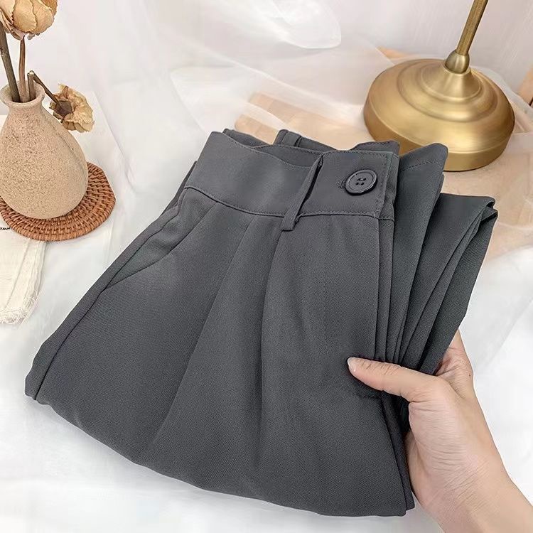 Spot Korean all-match solid color floor-length suit pants women's spring and summer new drape temperament ins high waist suit wide pants loose slim mopping long casual pants