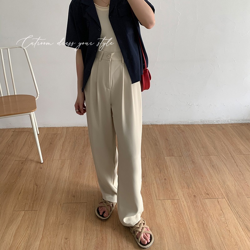 High waist slimming trousers for girls with drape texture pleated wide pants suit floor pants wide leg pants high waist suit pants