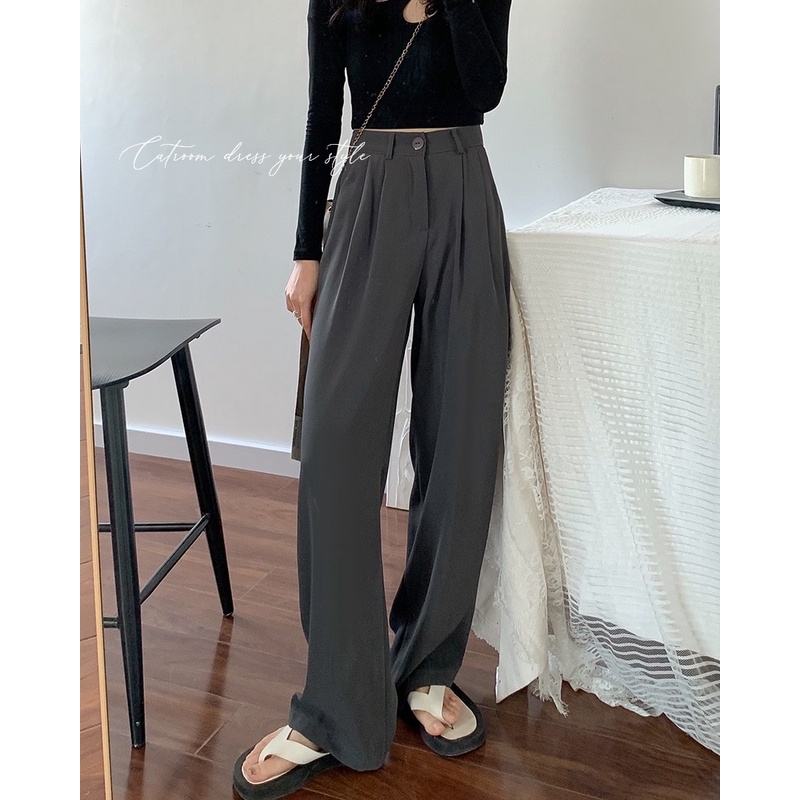 High waist slimming trousers for girls with drape texture pleated wide pants suit floor pants wide leg pants high waist suit pants