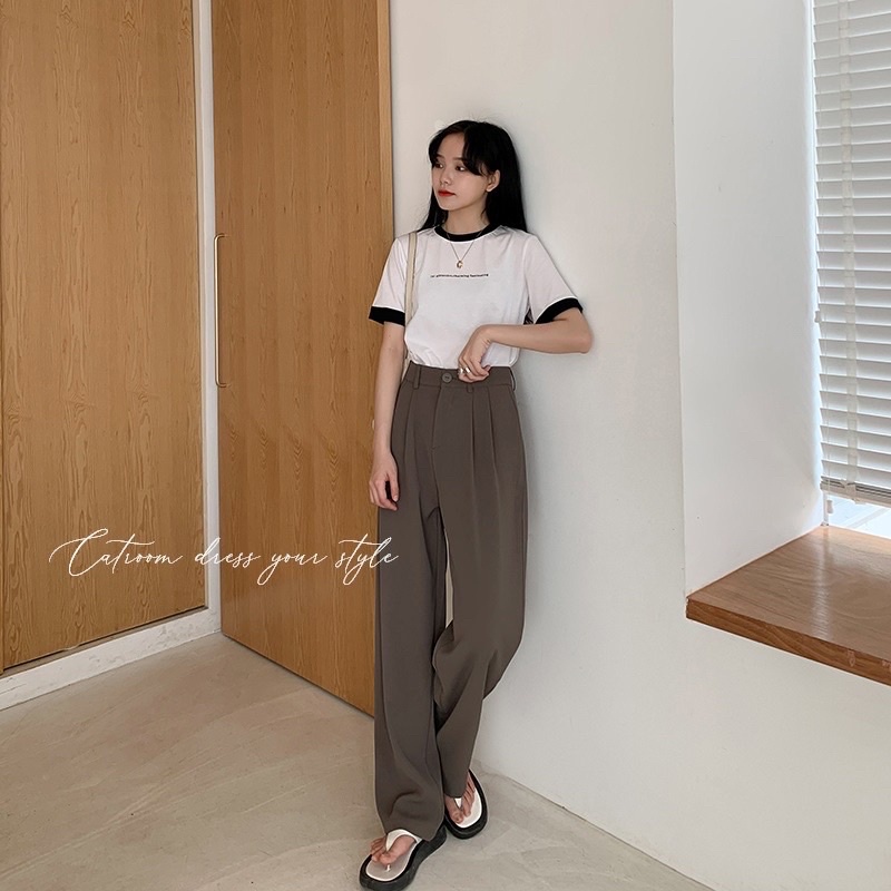 High waist slimming trousers for girls with drape texture pleated wide pants suit floor pants wide leg pants high waist suit pants