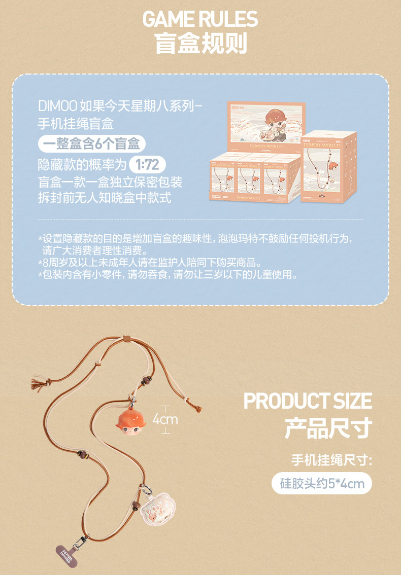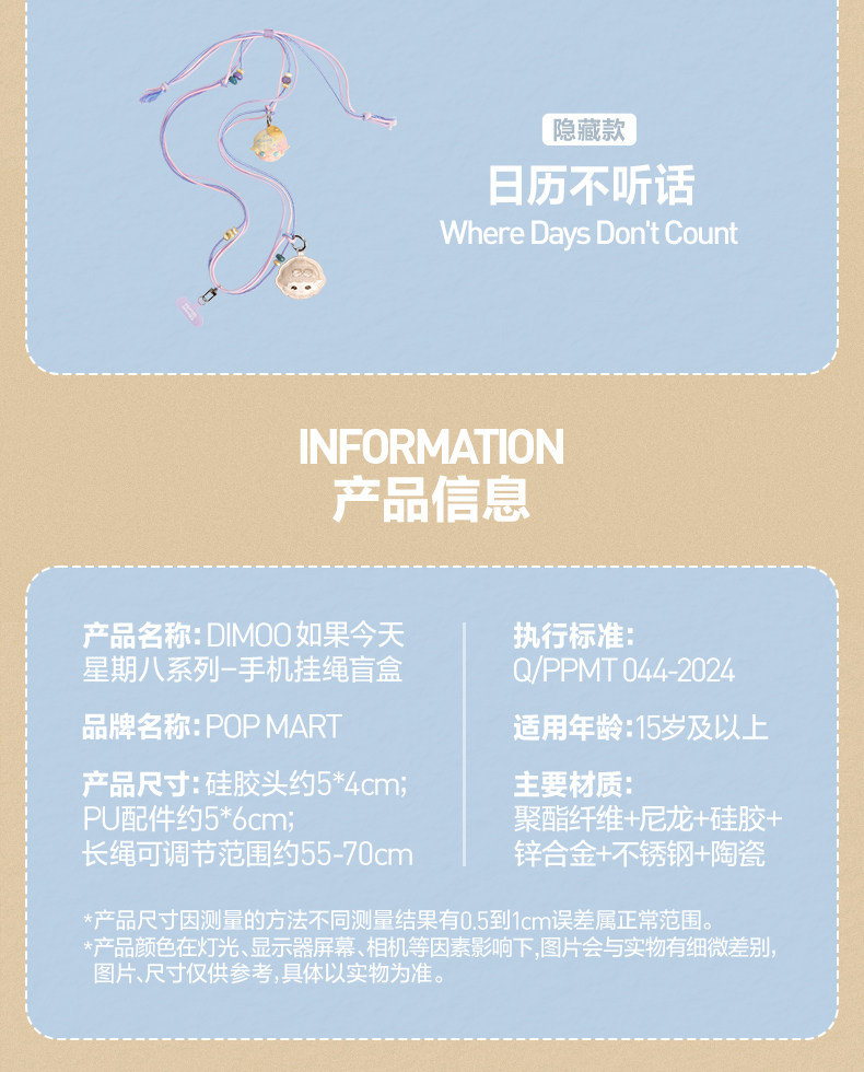 POPMART泡泡玛特DIMOO 如果今天星期八系列手机挂绳盲盒周边