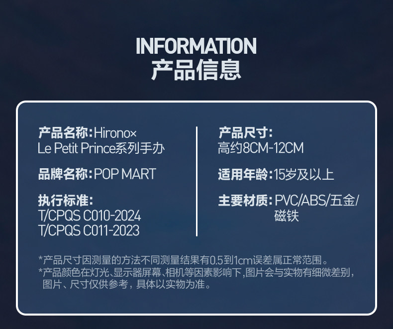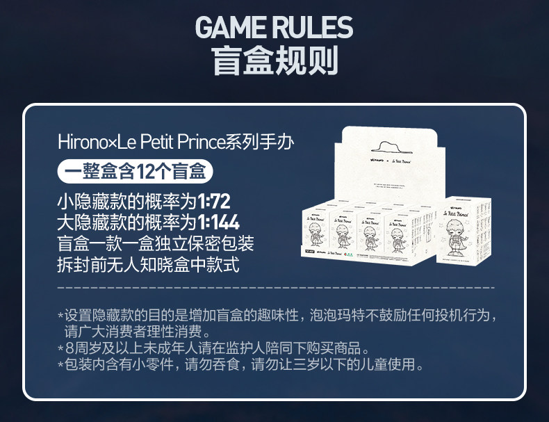 POPMART小野手办盲盒 Hirono×小王子联名 潮玩盲盒礼物首选 泡泡玛特限定系列 随机盲盒不指定款式
