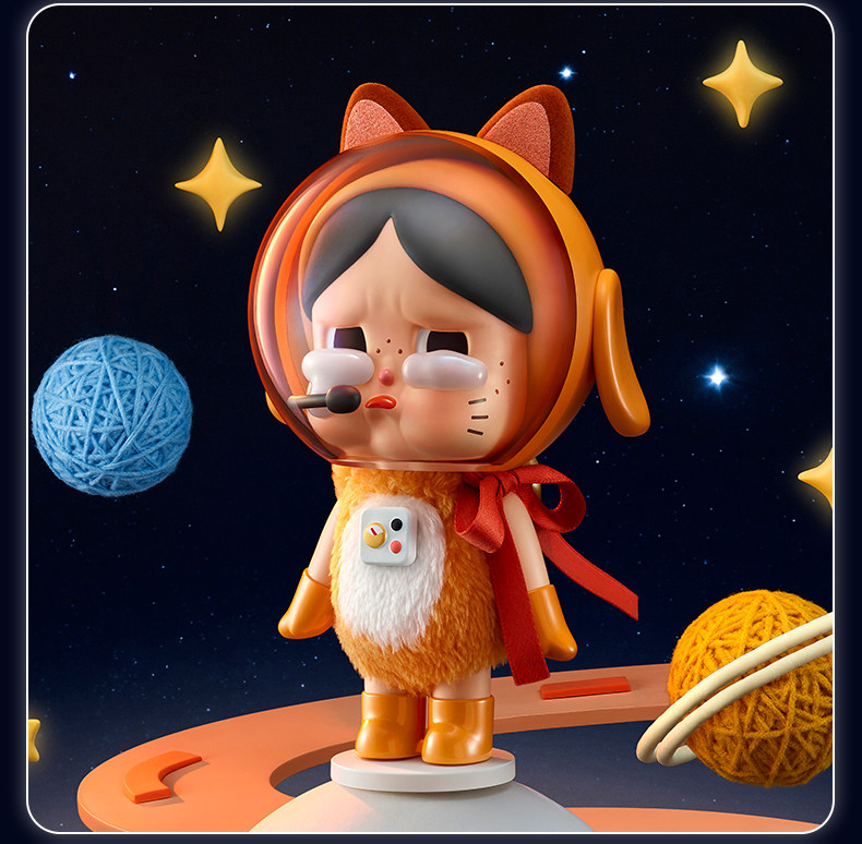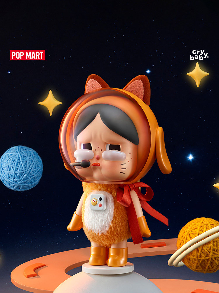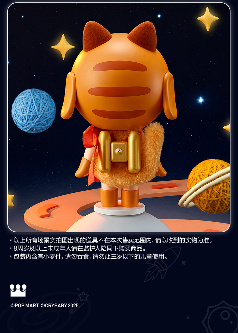 POPMART泡泡玛特Crybaby太空宇航猫手办橘色娃娃摆件礼物