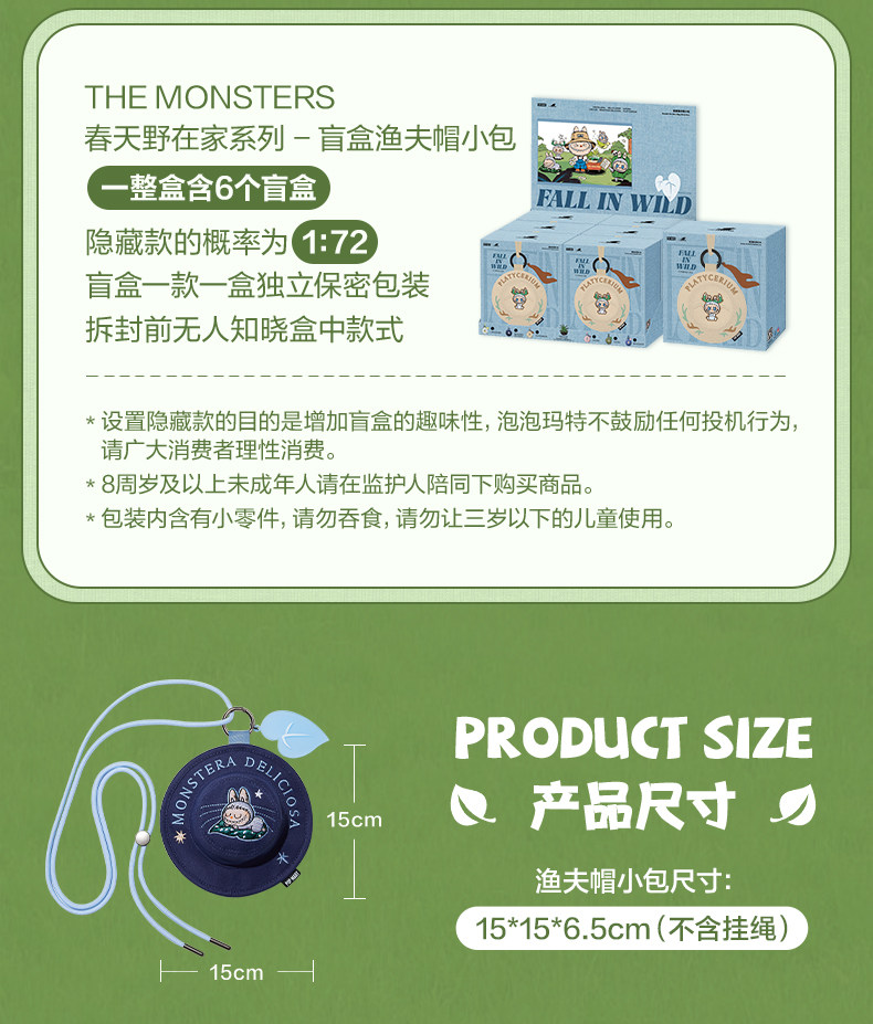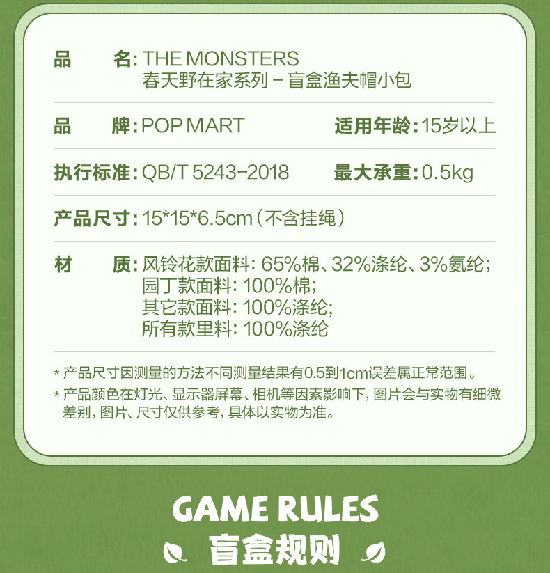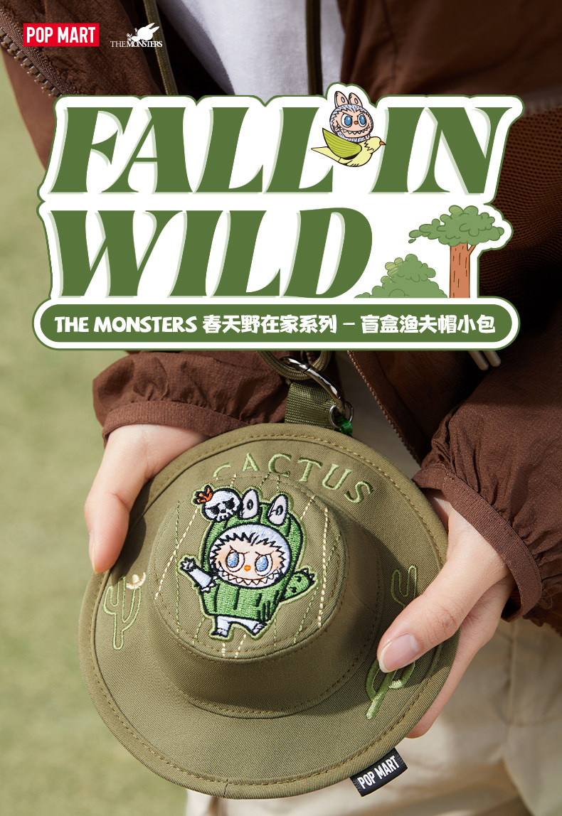 泡泡玛特拉布布THE MONSTERS春天野在家盲盒渔夫帽小包礼物LABUBU