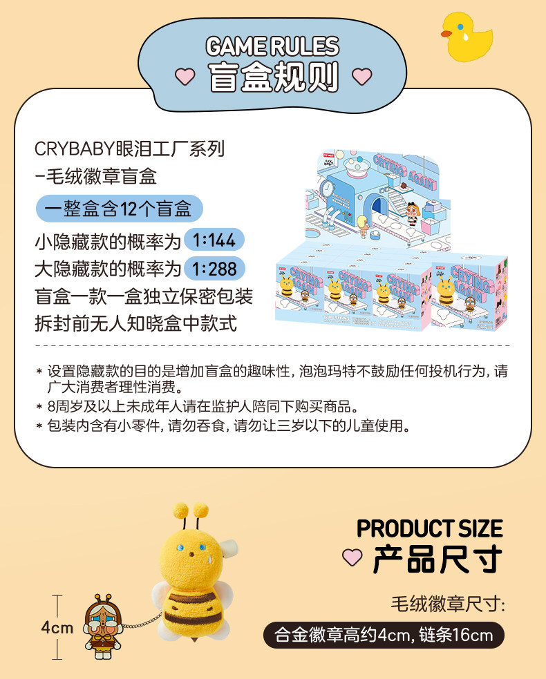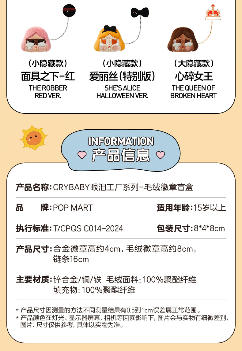 POPMART泡泡玛特CRYBABY眼泪工厂系列毛绒徽章盲盒潮流周边礼物
