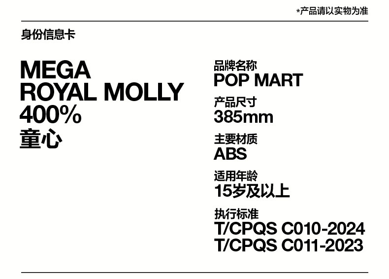 POPMART泡泡玛特MEGA ROYAL MOLLY 400% 童心摆件玩具