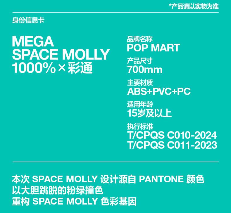 POPMART泡泡玛特MEGA SPACE MOLLY 1000% × 彩通摆件礼物