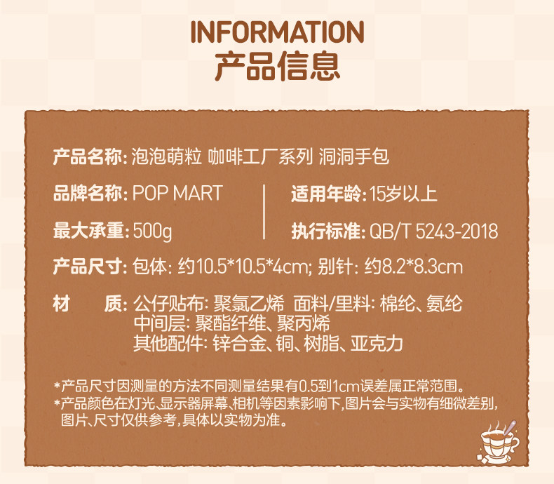 POPMART泡泡玛特泡泡萌粒 咖啡工厂系列 洞洞手包周边