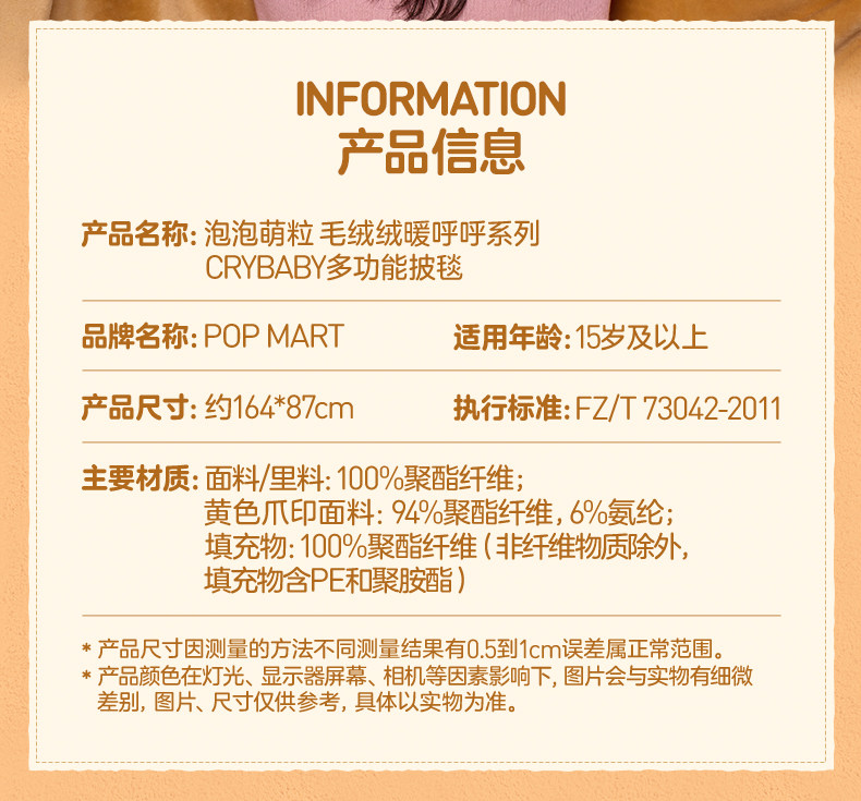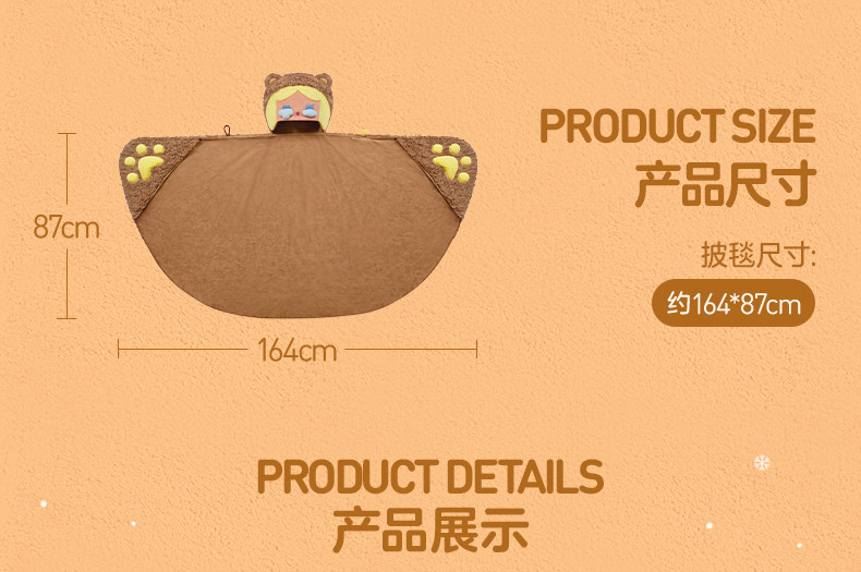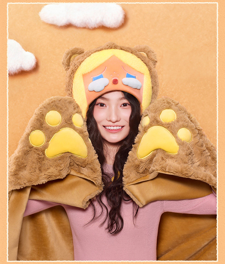 POPMART泡泡玛特泡泡萌粒毛绒绒暖呼呼系列CRYBABY多功能披毯