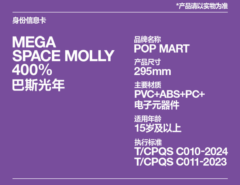 POPMART泡泡玛特MEGA SPACE MOLLY 400% 巴斯光年礼物摆件