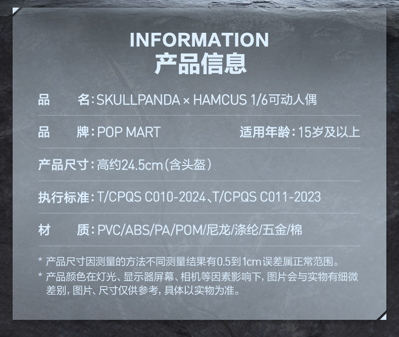 POPMART泡泡玛特SKULLPANDA × HAMCUS 1/6可动人偶娃娃礼物摆件