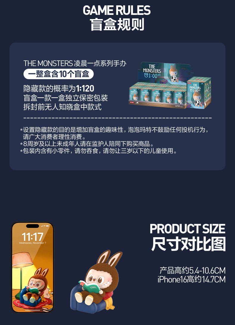 POPMART泡泡玛特拉布布THE MONSTERS 凌晨一点系列手办盲盒LABUBU