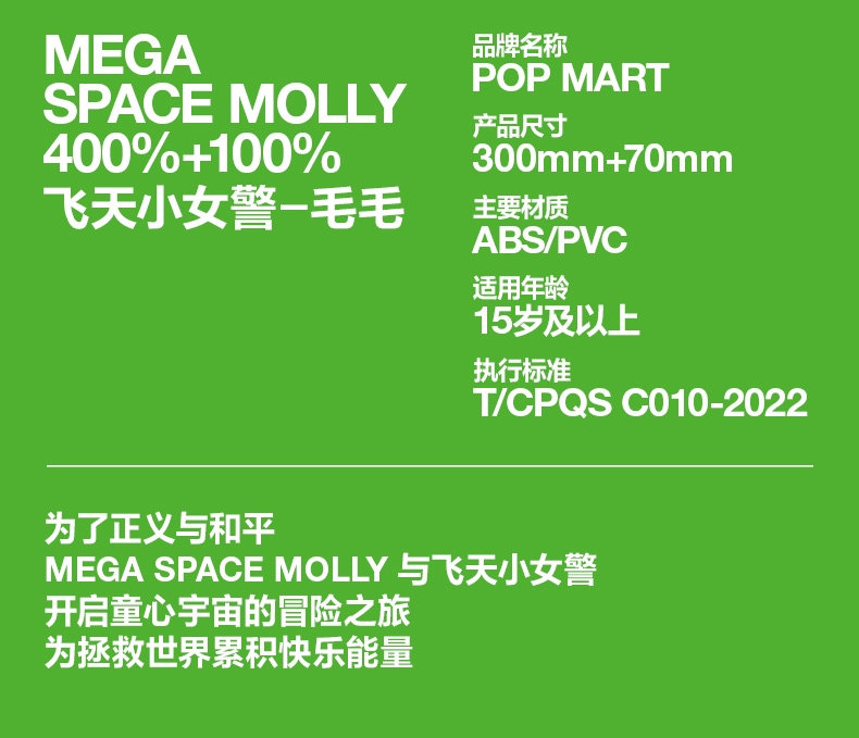 POPMART泡泡玛特MEGA SPACE MOLLY 400% +100% 飞天小女警毛毛