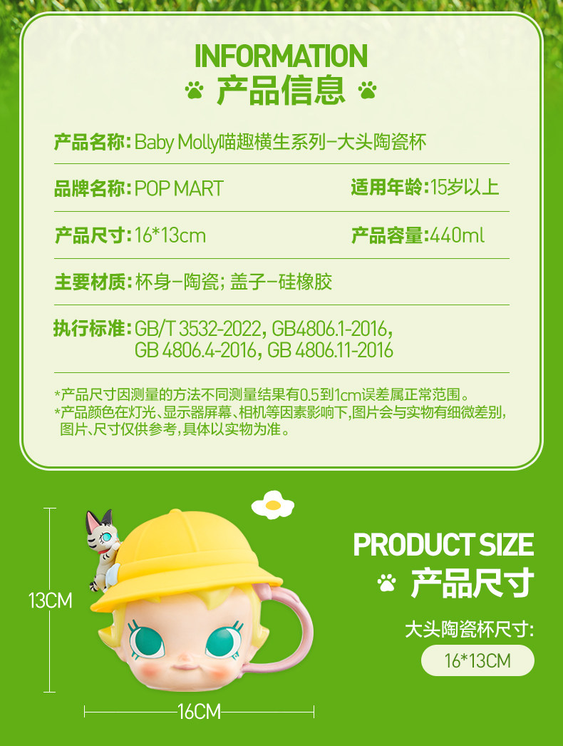 POPMART泡泡玛特Baby Molly喵趣横生系列大头陶瓷杯周边