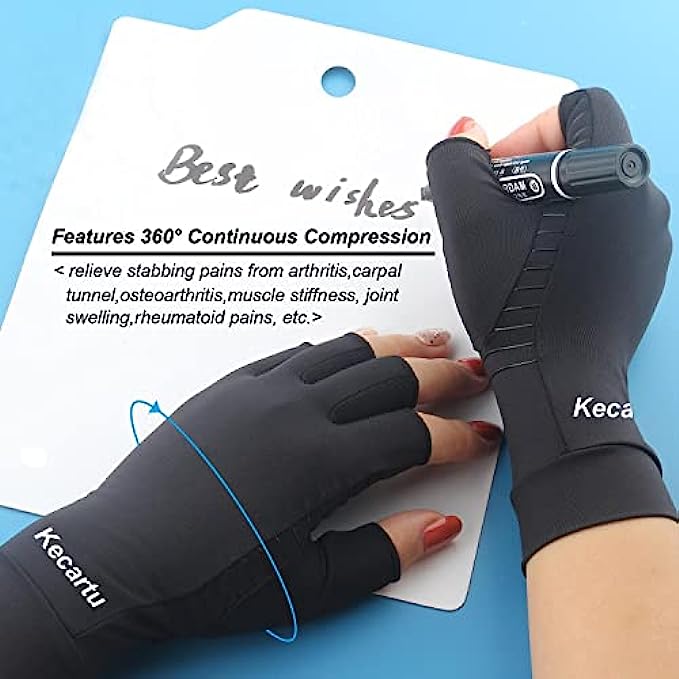 • 【Fingerless Cooper Arthritis Gloves】- Fingerless Copper Arthritis Compression Gloves allow you to touch and grip freely, perform everyday tasks like using phone, typing, cooking and more without interference. Opening is set at optimal length to provide perfect balance between beneficial compression support and finger / thumb mobility.