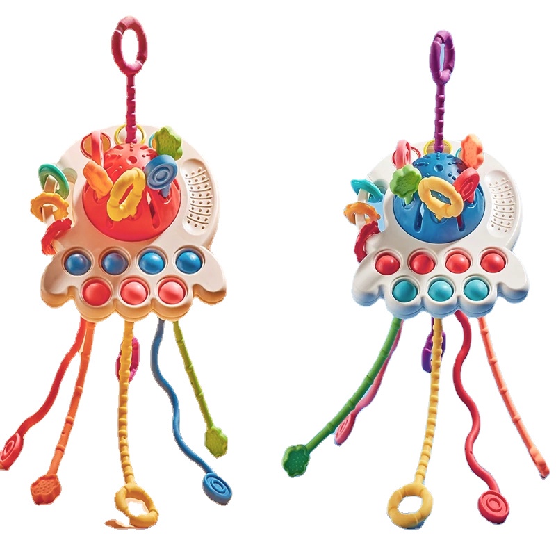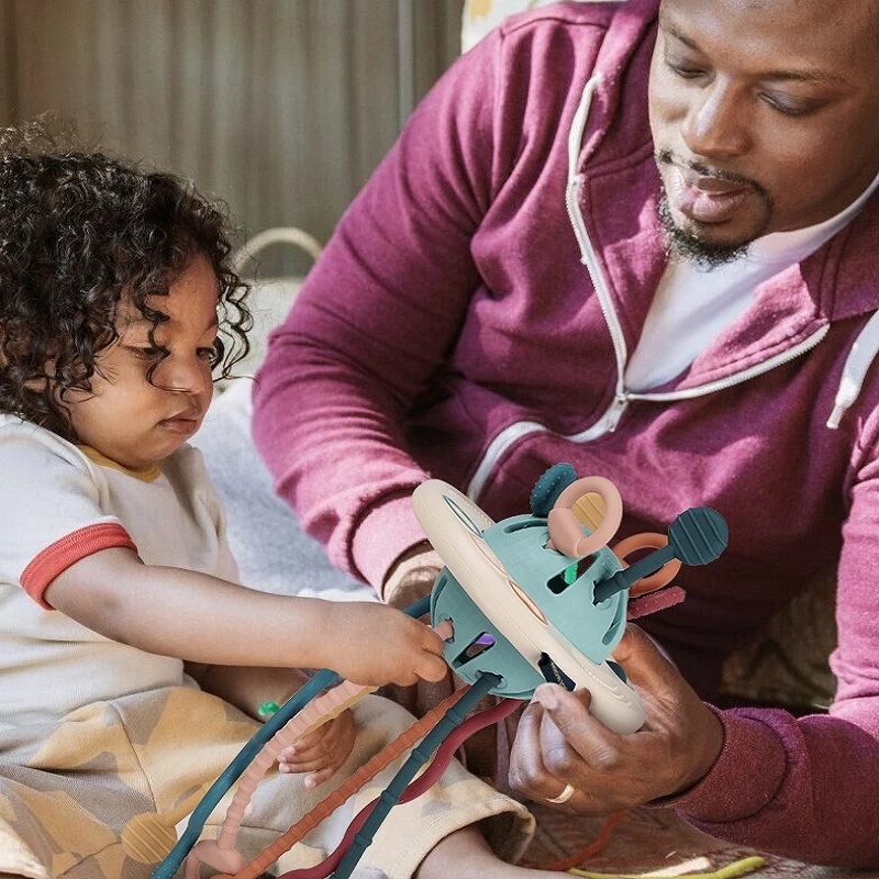 3 In 1 Baby Montessori Pull String Sensory Toys 18M+ Silicone Teething Activity Toy for Toddler Finger Grasp Training