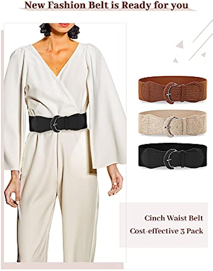 3 Pieces Women Wide Belt for Dresses Women Dress Belt Stretchy Cinch Belt Leather Elastic Belt for Ladies Dress Decoration