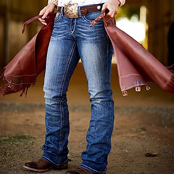 • MADE FOR COMFORT: These denim boot cut jeans are rider tested and thoughtfully engineered. The slim fitting style through the thigh features a boot cut design and performance stretch denim for added comfort that holds its shape and flatters yours.