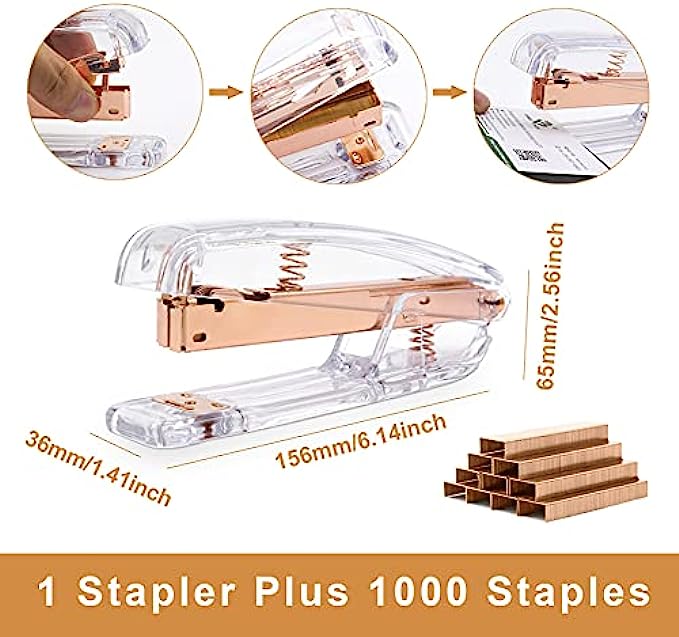 【Elegant Colors】 All office stapler set color are rose gold, elegant color and design will make your desk luxurious, clean and bright, and relax your mood.