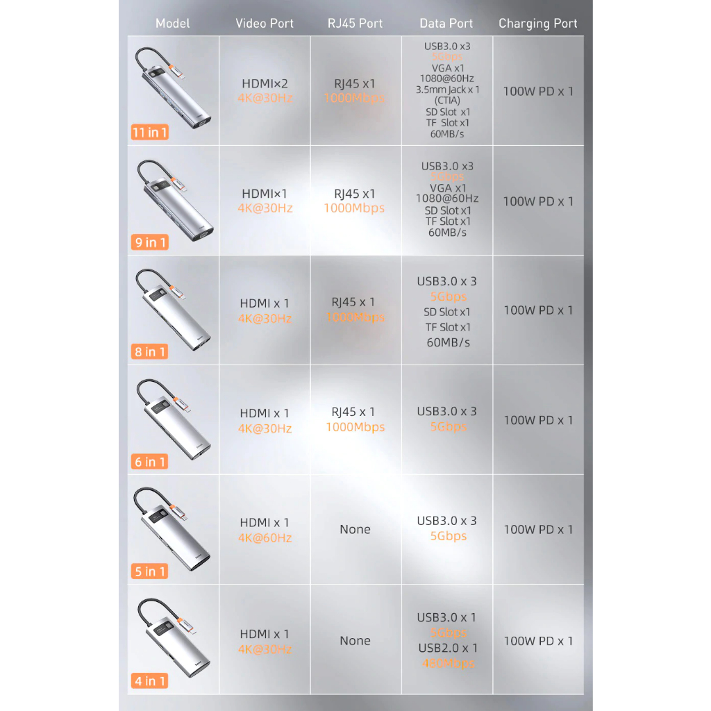 Baseus Metal Gleam Hub USB C All in 1 Type C Metal HUB to HDMI VGA RJ45 USB 3.0 Adapter Data Transfer Dock
