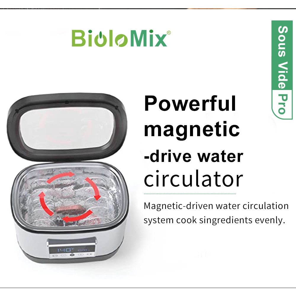 BioloMix 6th Generation Sous Vide Oven Pro Stainless Steel 8L Pot Accurate Temperature Touch Control Water Circulator Bath Cooker