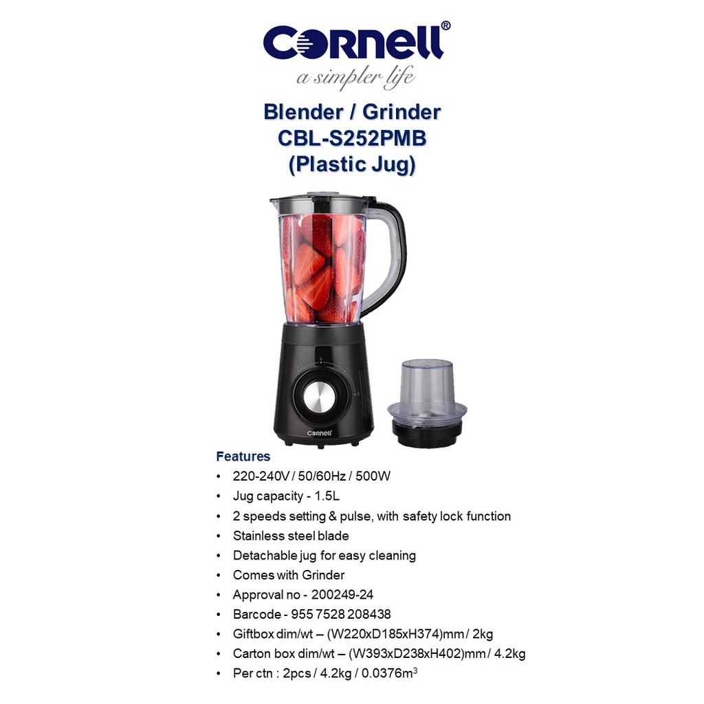 Cornell 1.5L Jug Blender with Grinder High Speed Mixer in 500 Watt CBLS252PMB