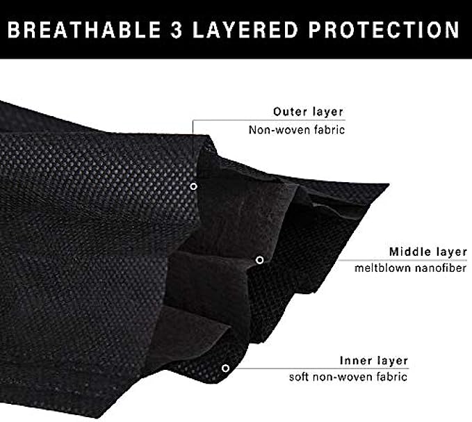 Disposable Face Mask, 100 PCS Black Masks, 3 Ply Protection Face Masks
