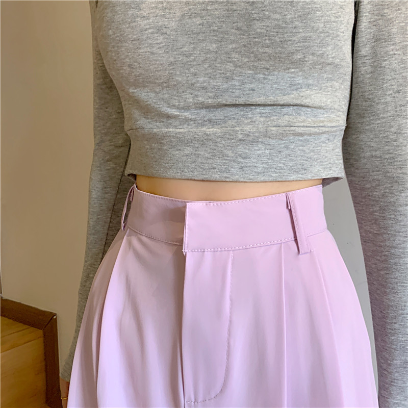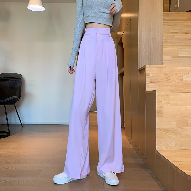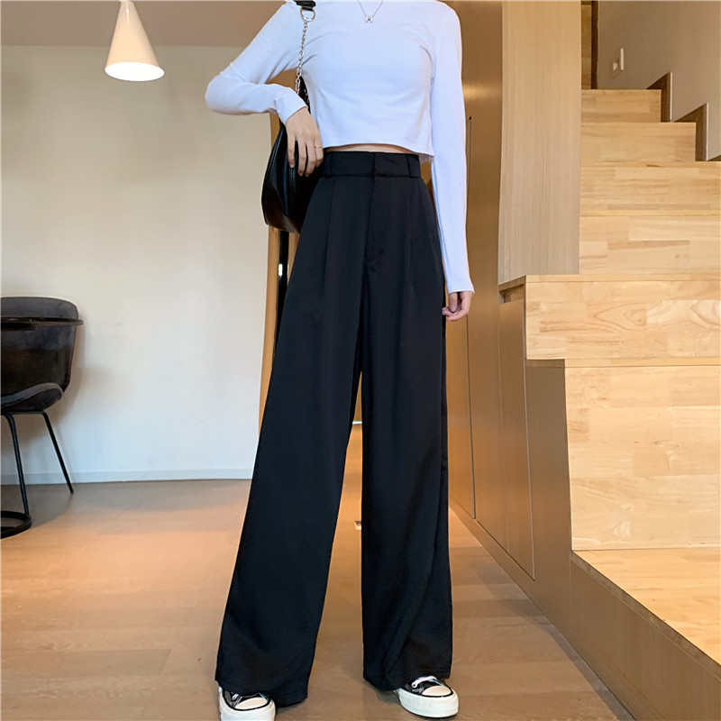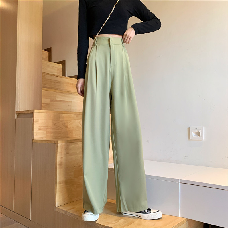 Flowy Long Pants Women Korean Loose Wide Leg Plain High Waist Green Trousers