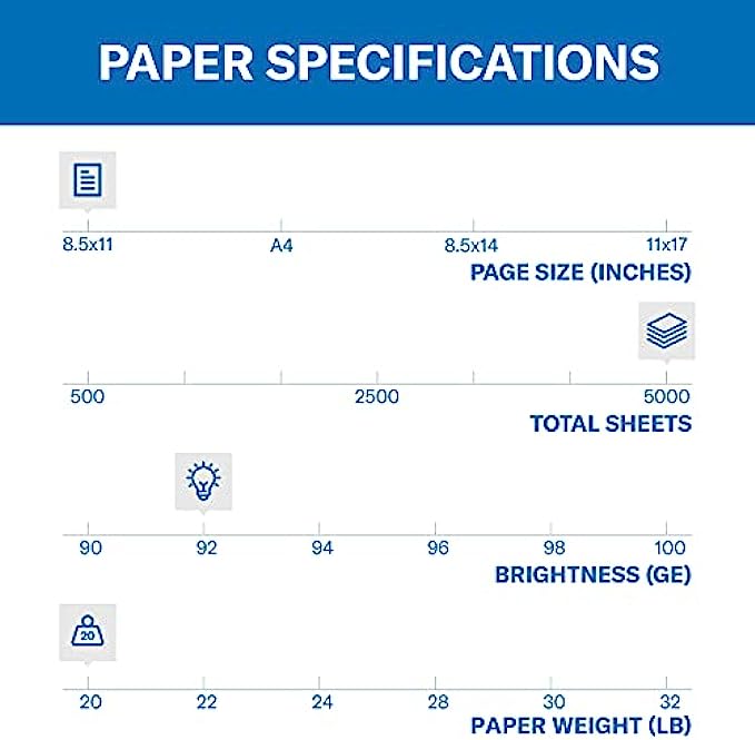• HAMMERMILL’S BEST SELLING PRINTER PAPER – You will receive one carton of copy paper, which includes 10 individual reams of paper inside. Each ream of paper has 500 sheets of 20 pounds, 92 bright, 8.5" x 11" white copy paper