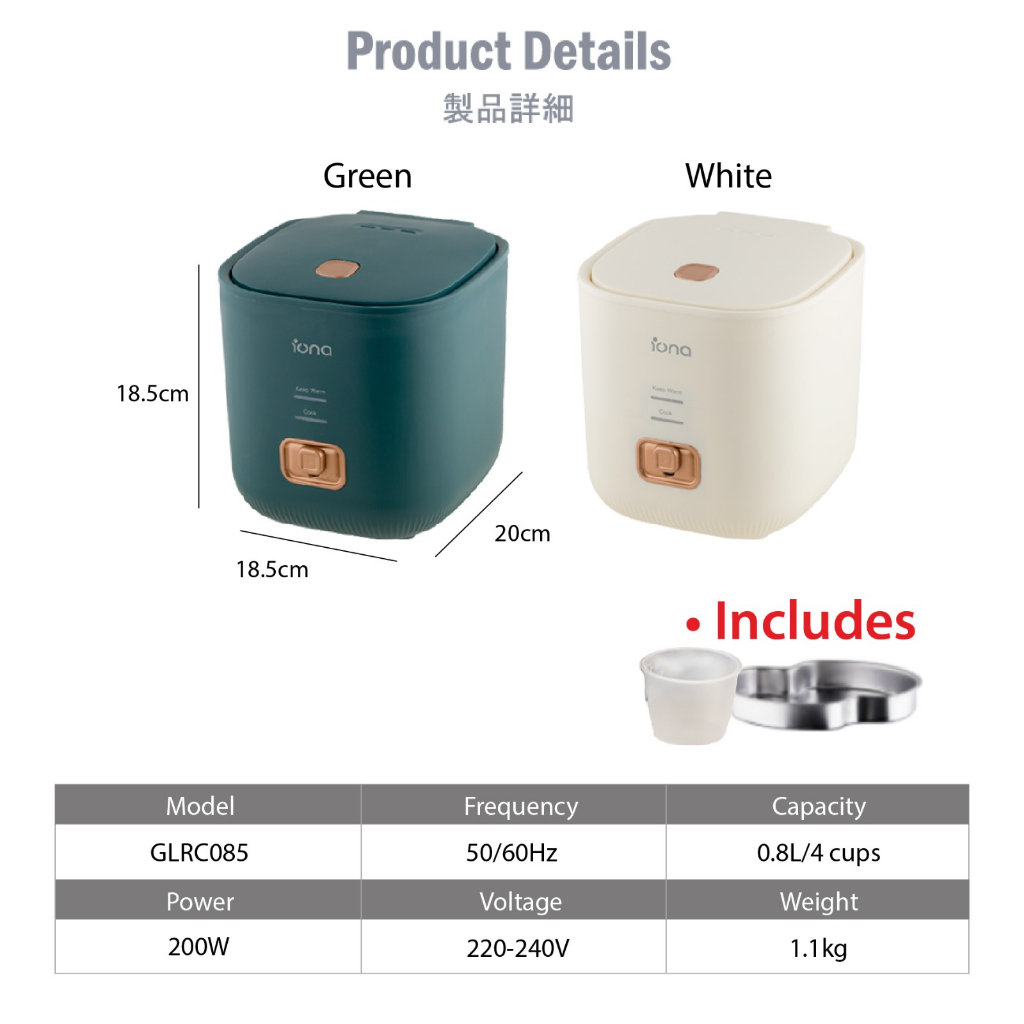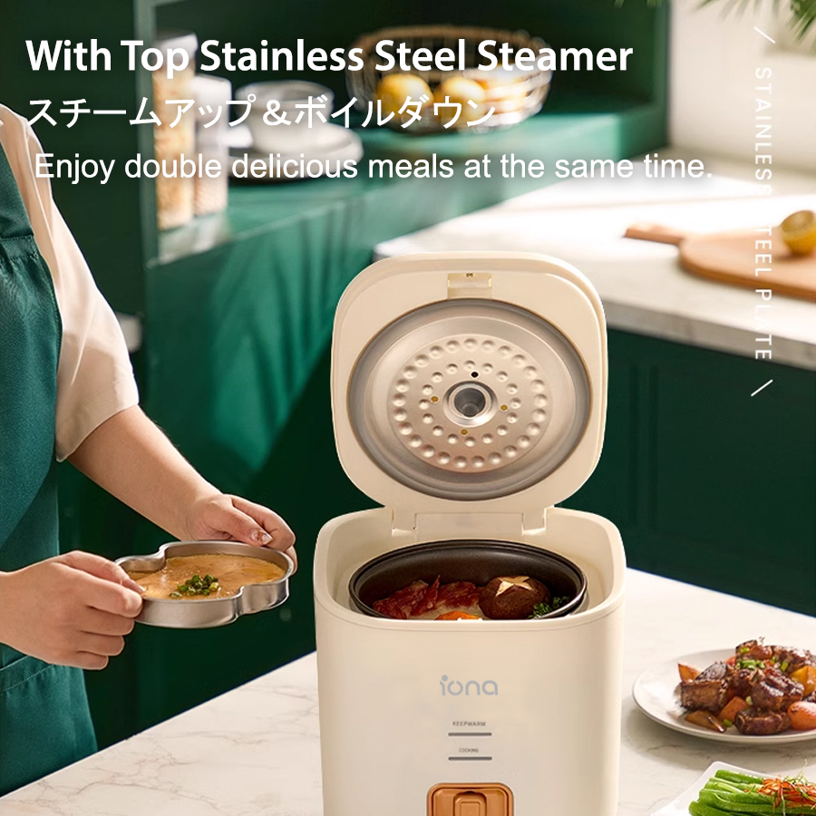 IONA 0.8L Small Mini Rice Cooker Non Stick With Steamer | Multi Function Rice Cooker | - GLRC085