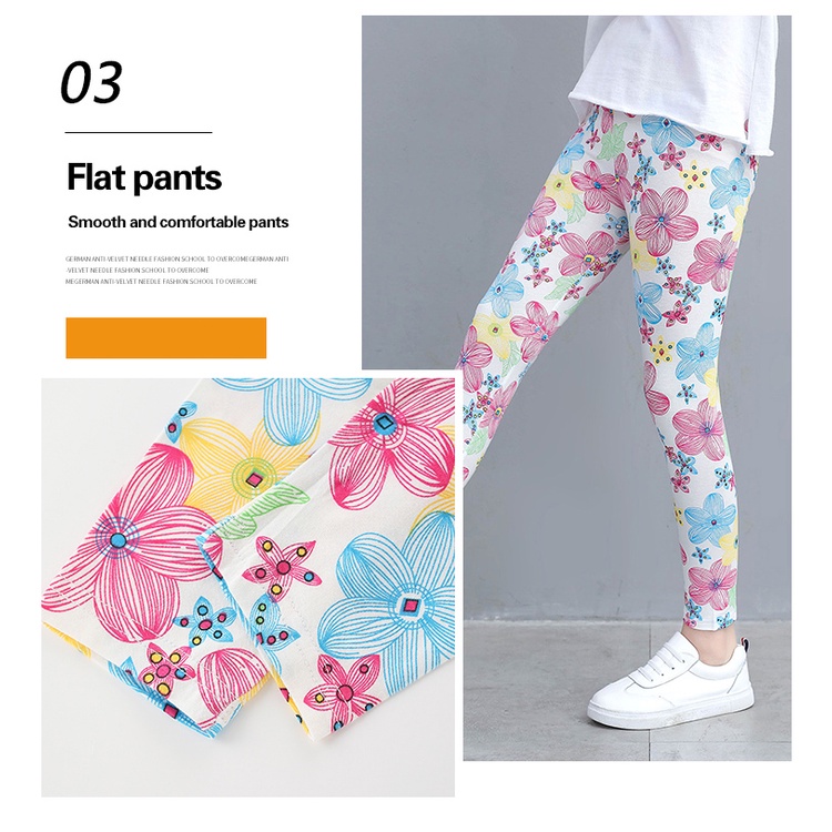 Kids Leggings For Girls Long Pants Flower Print Comfort Cotton Beauty Legging Girls Tights