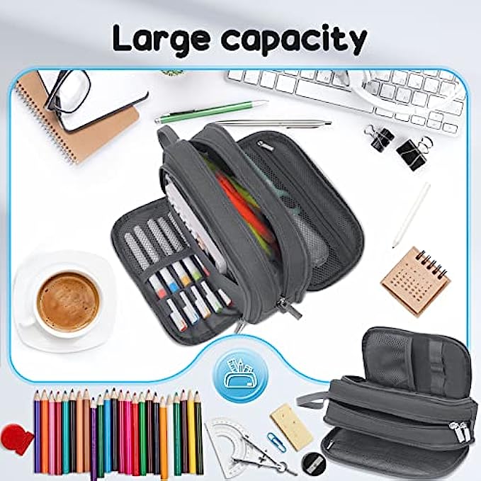 【Innovative storage space for your convenience】- Our pencil case is innovatively designed with 4 compartments. The zipper pocket can store notes, the other side pocket can store commonly used cards. Both the middle zipper area and the outer zipper adopt the double zipper design, which eliminates the direction restriction brought by the zipper. The scientific space design not only makes the storage clear, but also makes it convenient for you to take the items you need.