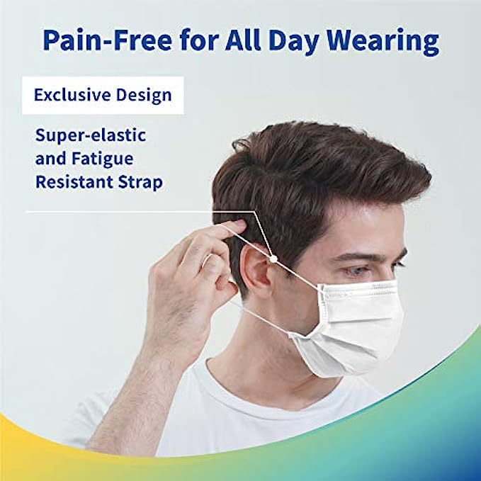 • 【3-ply Face Mask Providing Full Protection】The disposable face mask is made of 3 layers of high-quality non-woven fabric. The inner PP meltblown layer is for filtration, and the 2 PP spunbond layers are for water-resistance and ventilation.