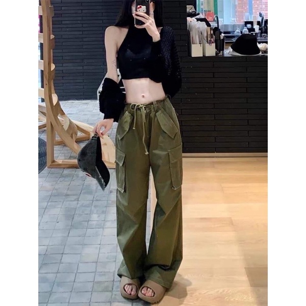 NEW No.8535 High-Waisted Cargo Pants With Drawstring Camouflage Shape!! Very Popular Now Keltis Signage Work.