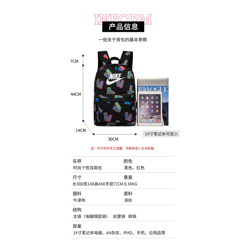Nike5894 Unisex Double Backpack Large Travel Unisex Bag Laptop Bag