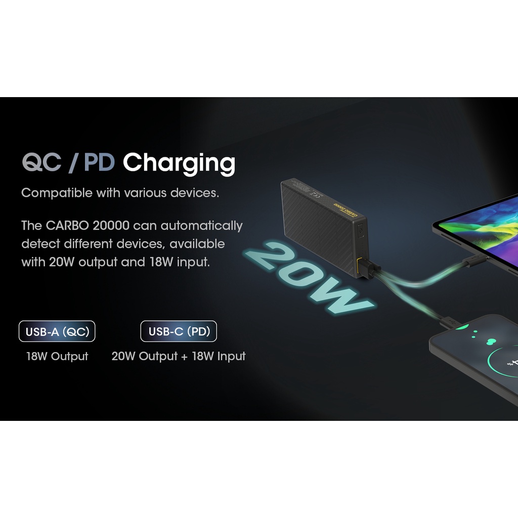Nitecore Carbo 20000 Lightweight 20000mAh Power Bank 20w Quick Charge Waterproof