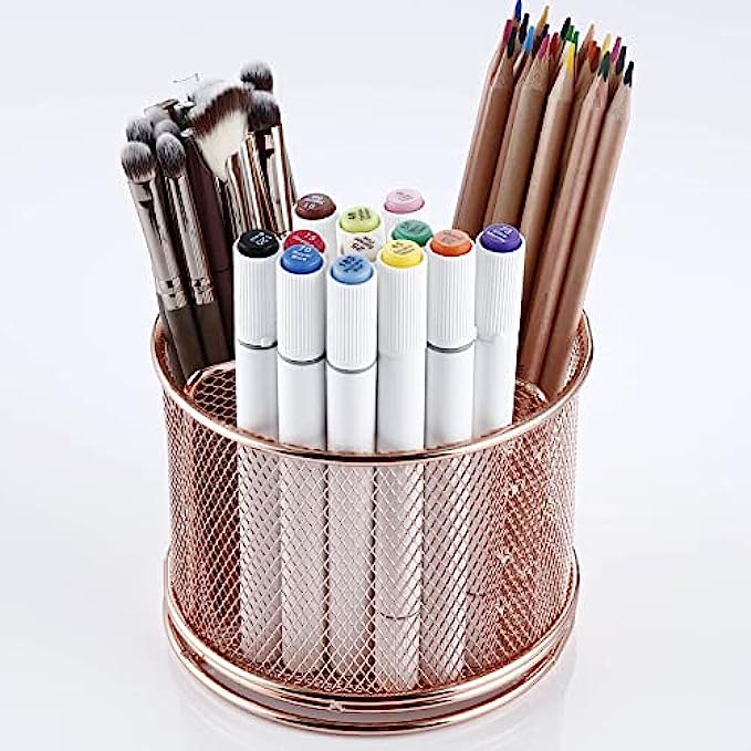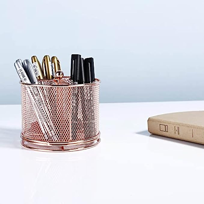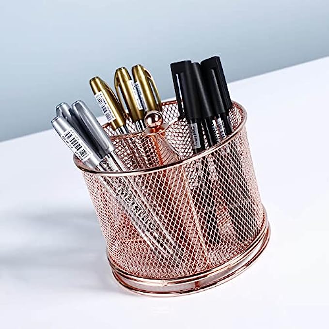Pen Holder For Desk-360 Degree Rotating Multi Functional Pen Holder-Pencil Holder-Pen Organizer-Mesh Pen Organizer -Pen Storage For Desktop-Office School Home Pen Cup(Rose Gold)