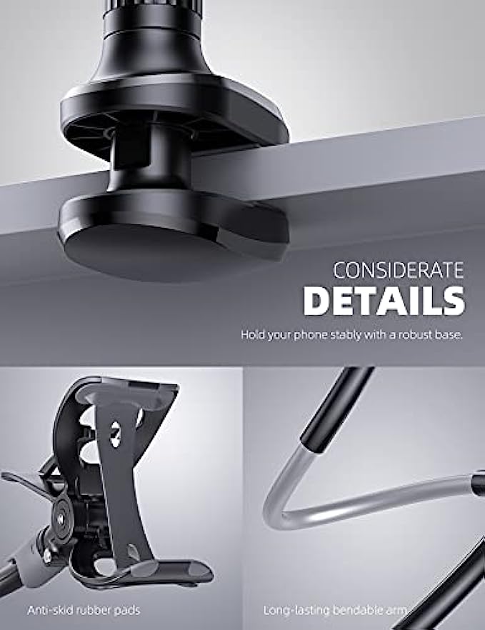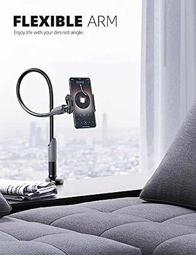 • 【Upgraded Version】Based on the pain points of similar products "Very shaky. Sag slowly after a period and can't keep a position for your phone anymore", the arm of our gooseneck phone holder for bed adopts better materials and design. It has improvements in both stability and durability. Note: the long arm is not a super flexible type, which aims to add stability.